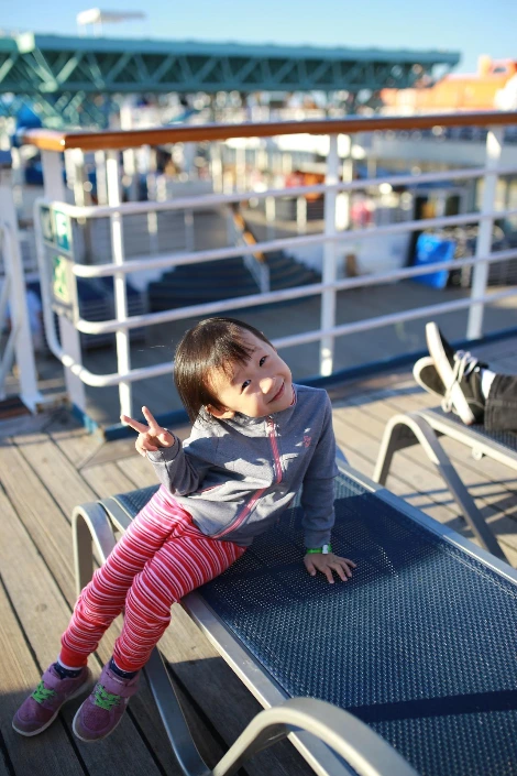 인고의 수속 절차를 마치고 드디어 크루즈에 올라탈 시간. 아이도 지루한 시간을 지나 드디어 배에 올라타며 폴짝폴짝 뛰었다. 오후 두 시가 넘어 배가 출발했다. 크루즈가 서서히 항구를 떠났다. 앞으로 바다 위에서 나흘 밤을 보내야 한다니 기분이 묘했다.