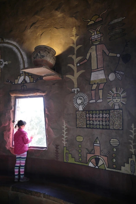 관광객들로 혼잡한 틈바구니를 비집고 국립공원 안으로 들어갔다. 그곳에서 인상 깊게 본 곳 중 하나는 데저트 뷰 와치 타워다. 둥근 성처럼 생긴 아담한 건물이다. 그 안은 이국적인 느낌으로 가득했다. 아이는 계단을 올라가며 벽에 그려진 인디언 원주민의 상형문자 벽화를 신기한 듯 바라봤다. 4층 꼭대기에 올라 전망대로 나왔다. 아래를 내려다보니 멀리 그랜드 캐니언의 협곡과 산맥이 겹쳐져 보인다. 태초부터 이어진 지질작용의 오랜 역사만큼 짐작할 수 없이 거대한 공간이 느껴졌다.