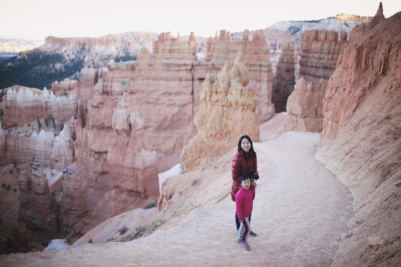 자이언 캐니언에는 18개의 공식 트래킹 코스가 있다, 우리는 아이를 데리고 1.6킬로미터의 캐니언 오버룩 트레일에 도전했다. 쉬운 코스인 줄 알고 시작했는데 생각보다 힘겹게 산을 올라야 했다. 다행히 아이는 힘든 산길도 지치지 않고 씩씩하게 걸어 올라갔다.