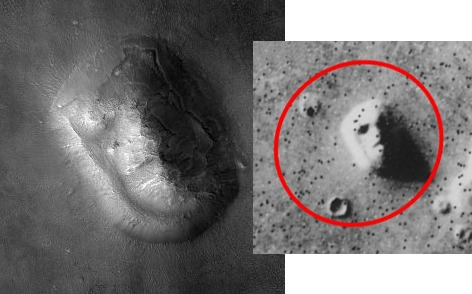 음모론자들은 이후 얼굴 형상 외에도 화성 표면 사진에서 인어공주, 전갈, 피라미드 등 다양한 모습의 바위 형태가 발견됐다고 말하며, 화성에서 이미 생명체가 발견됐지만 미국 정부가 이를 감추고 있다고 주장했습니다. 이에 NASA는 2001년 화성 정찰 위성이 촬영한 시도니아 평원의 고해상도 사진을 공개했는데요. 자세히 보면 사람 얼굴이라기보다는 거대한 바위 형상만 확인됩니다.