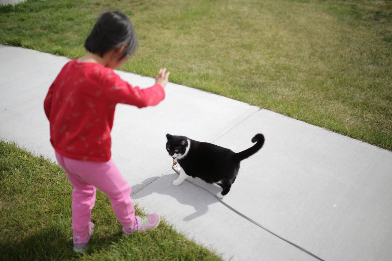 와이오밍 주로 진입한 첫 날, 휴게소에 잠시 들렀다. 설레는 마음처럼 산뜻한 바람이 불어 왔다. 앗, 고양이다! 아이가 휴게소 들판에서 뛰어다니다가 고양이를 발견했다. 누군가 까만 고양이에 목줄을 메고 산책 중이다. 고양이와의 여행이라니 정말 드문 광경이다. 고양이는 목줄을 매고 걷는 강아지 노릇(?)이 익숙한지 산책을 나름 즐기는 눈치다.