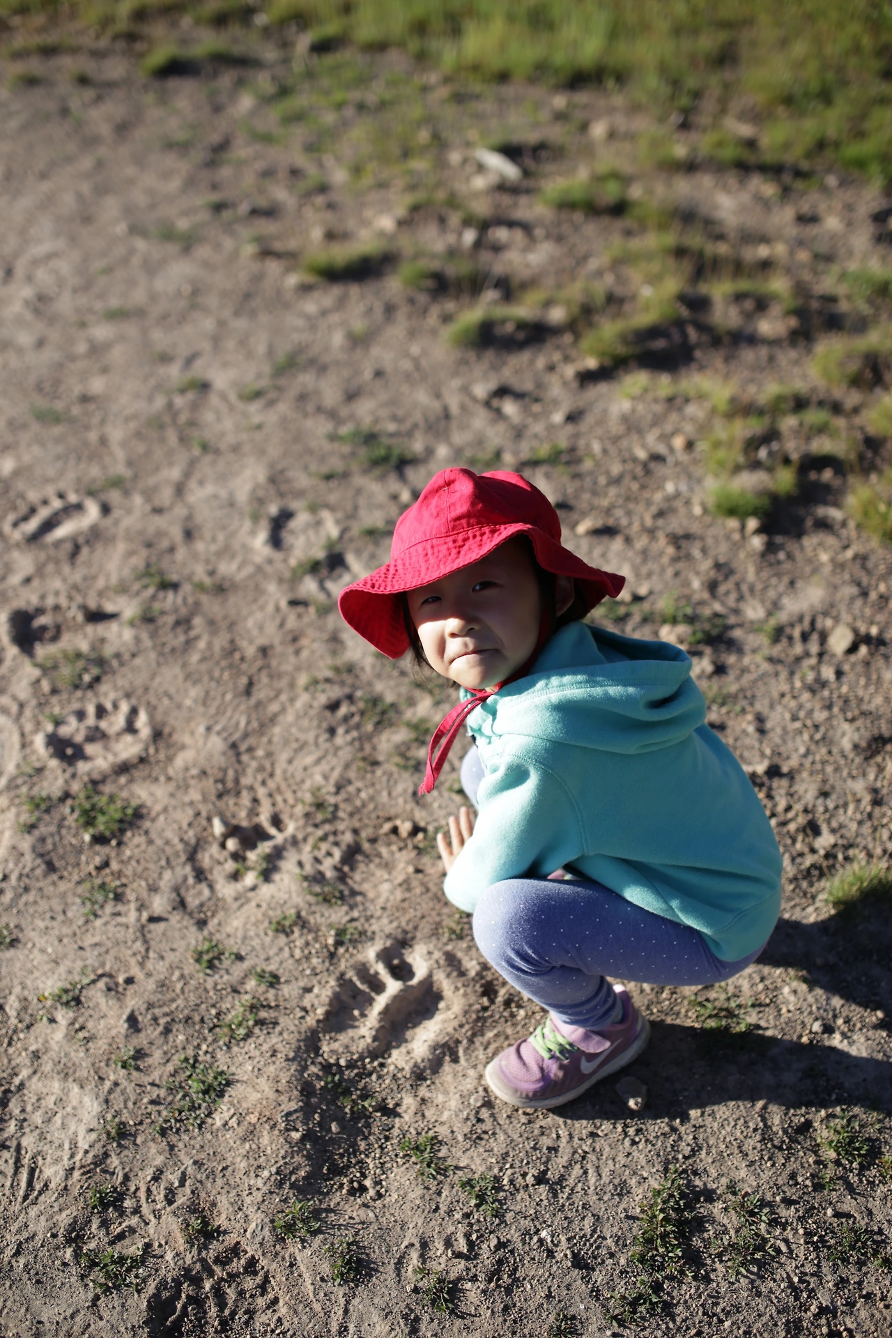 가장 예뻤던 간헐천인 모닝 글로리를 보러 가던 산길에서 곰의 흔적을 목격하기도 했다. 진흙 위에 독특한 발자국이 여럿 눈에 띄었다. 사람 발자국보다 크기가 약간 크고 동글동글 넓적하다. 바로 곰 발자국이다. 주변을 다시 보니 곰이 나타날지도 모르니 주의하라는 표지판이 보인다. 인적이 드문 이 길에 곰이 나타날 수도 있다고 생각하니 겁이 났다. 지호는 곰발자국에 자신의 발을 대보며 신기해했다.