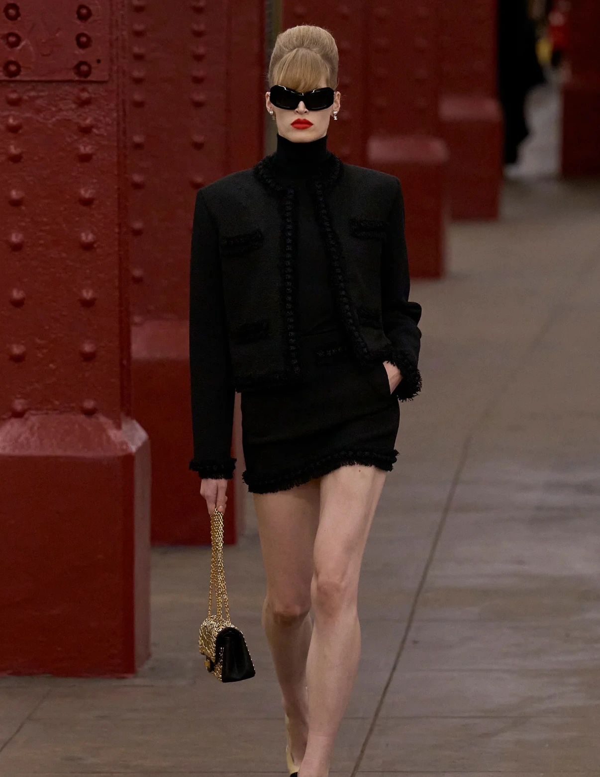 블랙 트위드 셋업을 입은 그녀가 지나간 순간