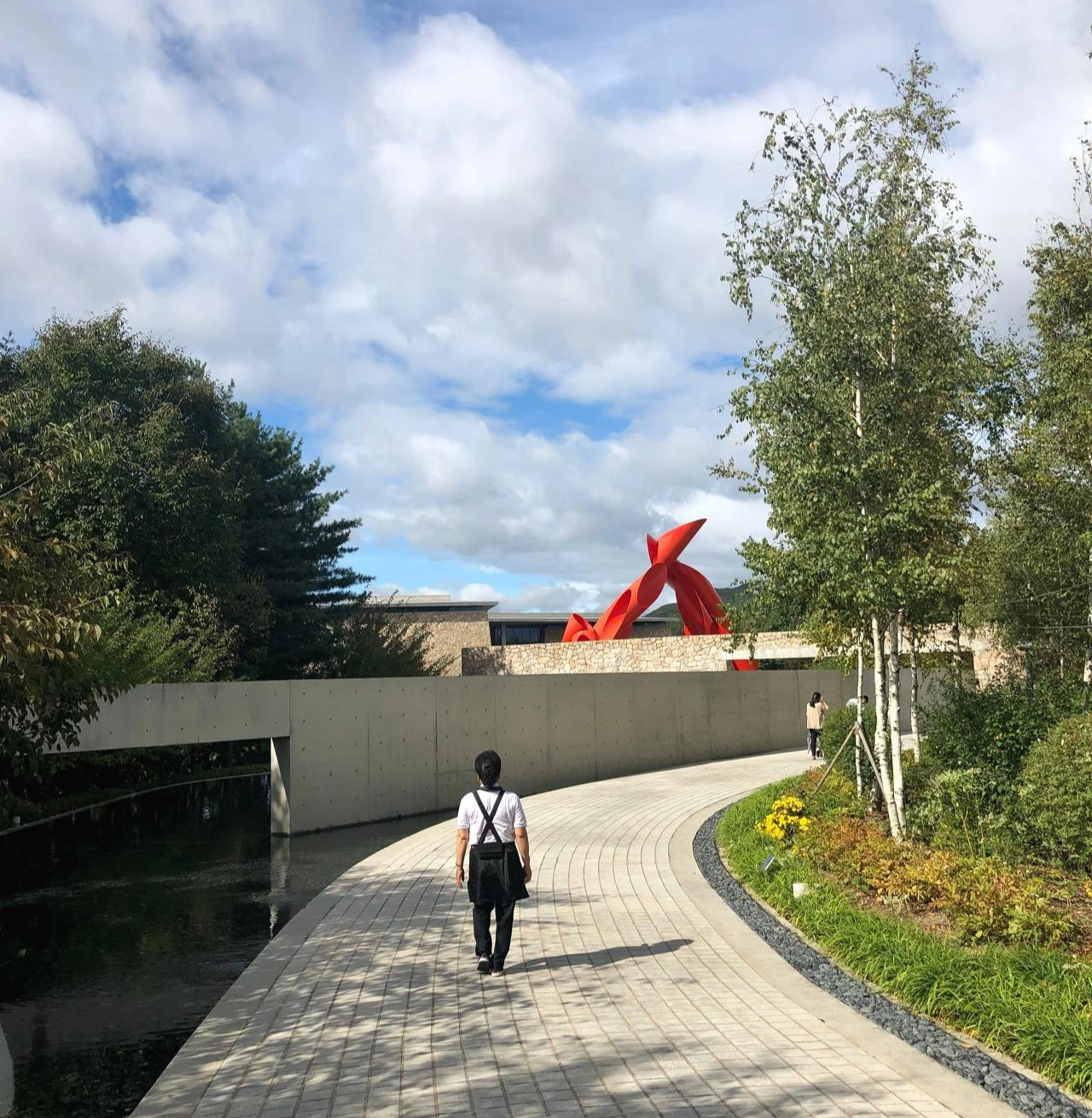 세계적인 건축가인 안도 타다오가 건물만이 아니라, 미술관 부지 전체를 설계하였다는 이 곳은 넓은 부지 곳곳이 하나의 흐름으로 연결되어 있다는 느낌을 준다. 물 흐르듯 자연스럽게 이어지는 넓은 부지의 공간들, 그리고 노출 콘크리트로 대표되는 안도 타다오의 아이덴티티가 그대로 살아있는 본관 건물과 이를 둘러싸고 있는 잔잔한 물, 그 물에 비친 건물과 배경이 되어주는 산의 절경.