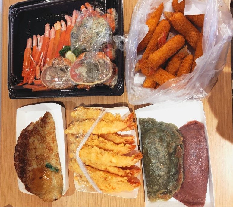 바닷가에 왔으니 해산물은 먹어야 하지 않겠어요?! 주변에 유명한 대게 음식점은 많지만 혼자라서 못 먹는다 슬퍼 말아요! 시장에는 없는 것 빼고 다 있답니다~! 게와 새우튀김이 가장 유명하고 게살고로케 등 속초에서 나온 싱싱한 해산물을 맛볼 수 있어요. 그 유명한 닭강정!은 덤이랍니다!