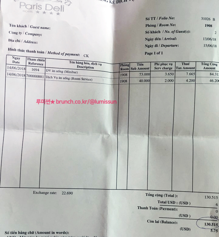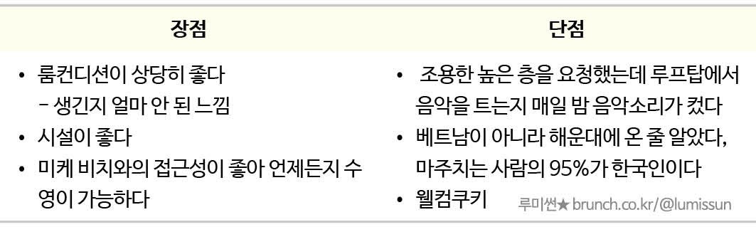 한국인이 너무 많다. 로비에 앉아 있어도 한국인, 엘리베이터에서 마주쳐도 한국인, 식당에서도 거의 한국인이었기에 여행 온 기분이 나지 않고 조금 답답했다. 2박 요금은 약 206$였는데, 쾌적한 방에서 시원하게 있긴 했으나 다시 간다면 호이안으로 갈 것 같다.