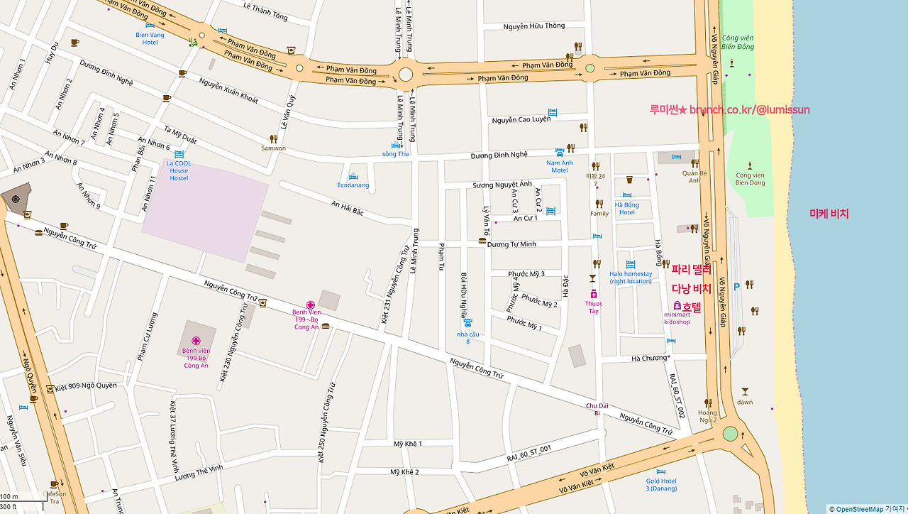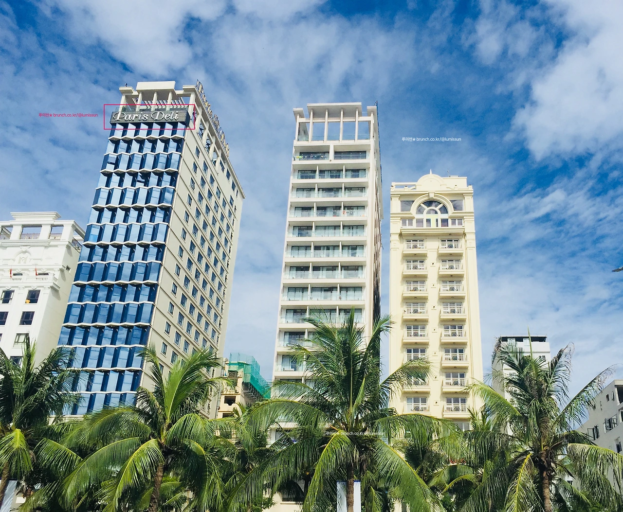 좋은 후기가 많아 일정 내내 연박으로 정했다가 호이안 관광을 위해 2박으로 변경한 호텔! 우리나라의 해운대처럼 미케 비치 앞에 수많은 호텔이 밀집되어 있는데, 그중 하나이다. 호이안 리조트에서 바로 넘어와 빽빽하게 밀집된 고층 호텔을 보다 보니 호이안이 그리워졌다. 아.. 나는 도심분위기는 정말 안 좋아하는 것 같아.