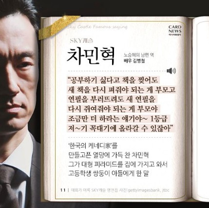 고백하자면 저 역시 아나운서님께 글을 받기 몇 시간 전, 아이에게 부끄럽게도 잔소리를 했습니다. <스카이 캐슬>의 차민혁처럼 말이죠. “조금만 더 하라는 얘기야. 1등급….” 조금만 더 하면 좋은 성적을 낼 수 있을 것 같다는 아쉬움, 좀 더 나은 삶을 살았으면 하는 마음. 정작 살아보니 그것이 꼭 ‘성적순’, ‘수능 순’이 아니라는 걸 누구보다 잘 알고 있으면서도 말입니다.