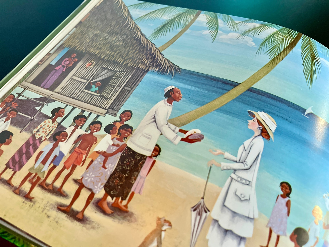 럼피우스의 집 거실벽에 걸려있는 커다란 배가 거친 파도를 항해하는 그림은 어렸을 적 저희 집 거실에 걸려있던 그림과 비슷해 시선이 머물고, 그림책 속 벽난로 위에 놓인 조개들 또한 아빠의 캐리어에 늘 가득했던 온갖 희귀한 산호와 조개들의 모습과 똑같아 향수를 불러일으킵니다.