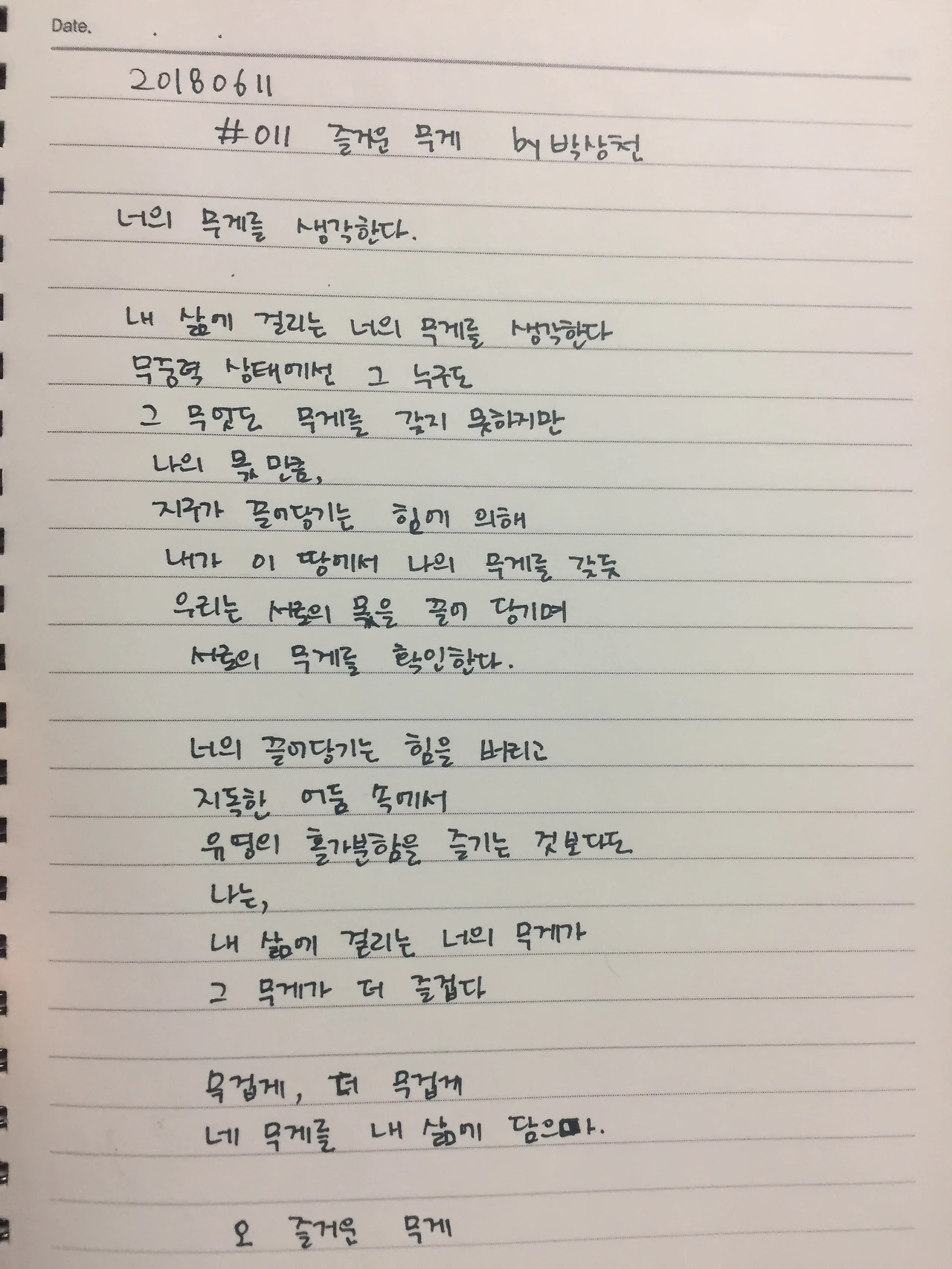 내 삶에 걸리는 너의 무게를 생각한다.