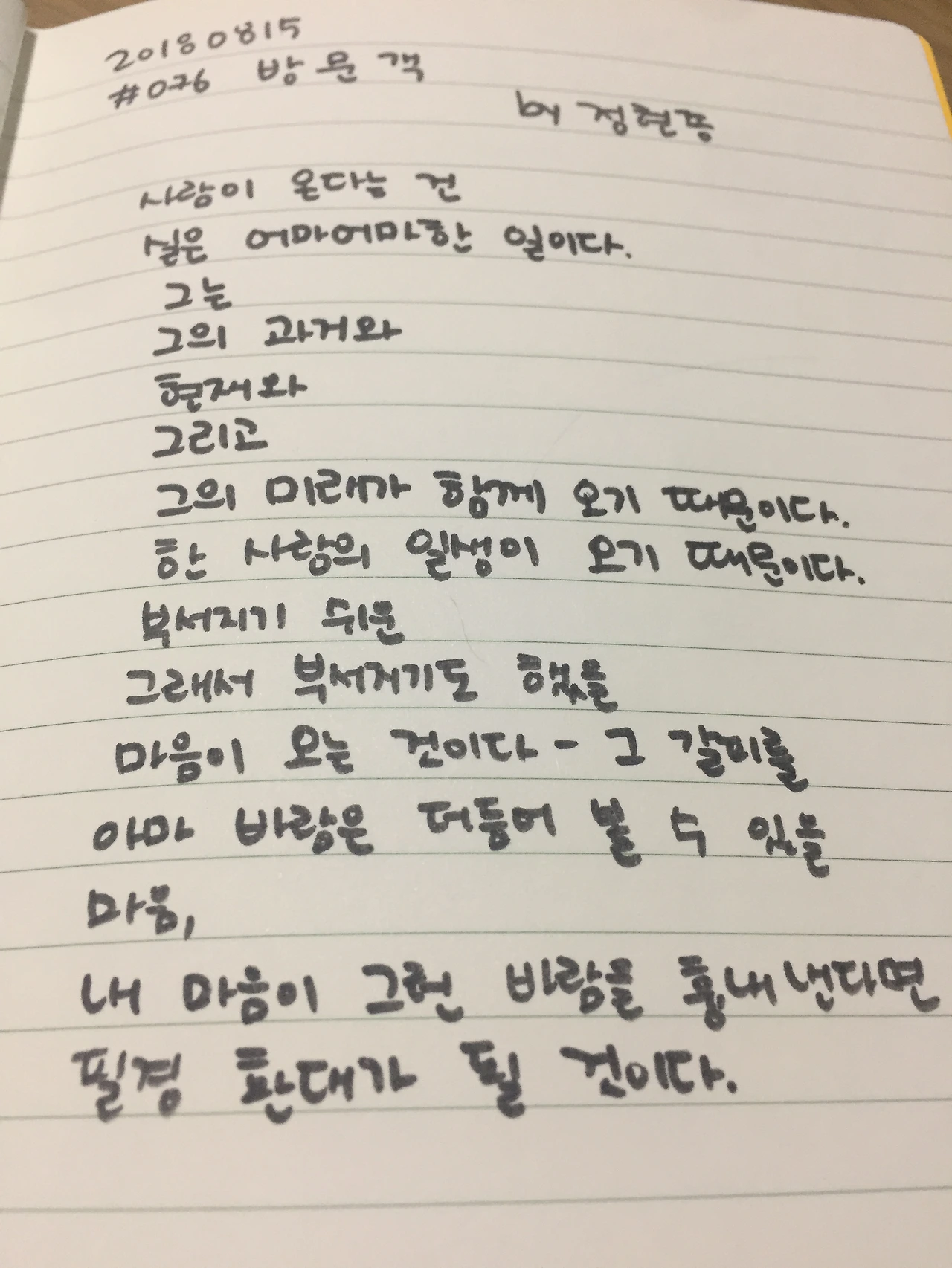 w: 이 시 너무 슬프지 않아? 사람을 만나는데 그의 일생이 다 같이 온다는거.