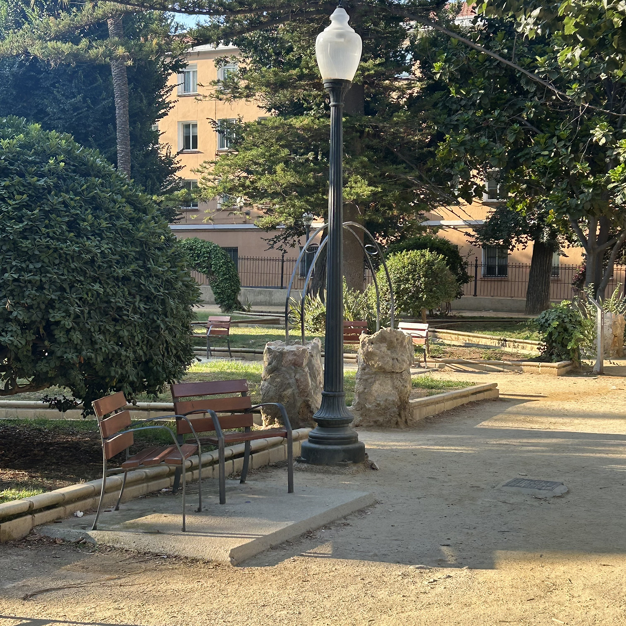 쉐어하우스에서 어학원 가는 길에 있는 동네 공원이 예쁘다. 알리칸테 벤치의 가장 큰 특징은 두 개의 의자가 서로 마주 보는 구조로 되어 있다는 점이다. 사람과 수다를 좋아하는 스페인 사람들의 캐릭터가 정말 잘 반영된 모습인 것 같다. 다만 혼자라면 낯선 사람과 애매하게 시선을 교환해야 하는 자리라서 저는 좀 사양할게요.