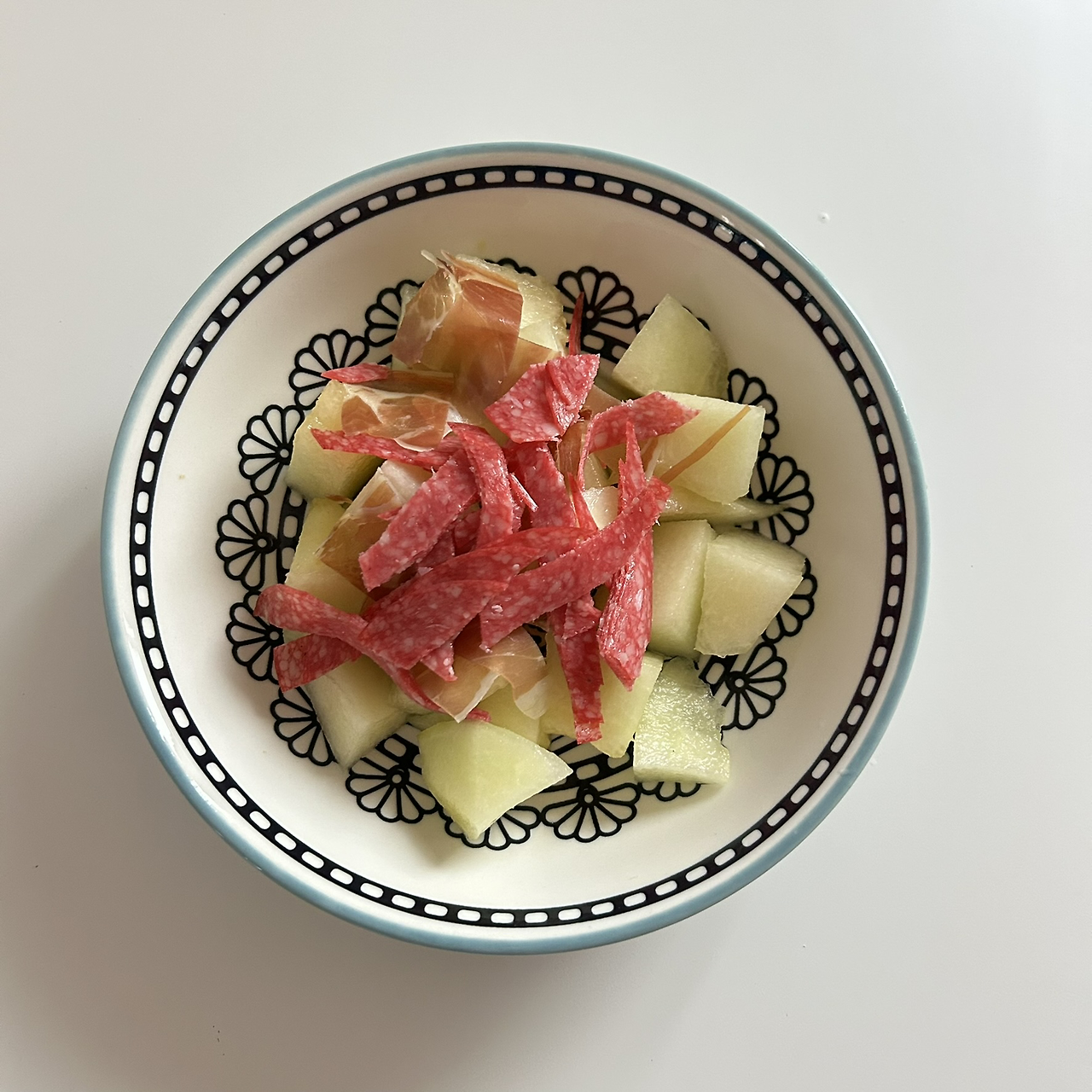 스페인의 타바스바, 여행 가서 한 번 정도는 체험해 볼만 하지만 되게 맛있는 음식을 먹을 수는 없다. 맥주와 와인에 곁들여 저렴한 안주를 먹을 수 있다는 문화가 새로울 뿐이었다. 게다가 타파스는 매우 단순한 음식이기 때문에 메르카도나에서 적절한 재료를 구입하면 직접 만드는 것도 어렵지 않다. 예산도 밖에서 먹든 안에서 먹든 크게 다르지 않아서 애매하지만, 만들어 먹으면 좋은 재료를 선택할 수 있다는 게 장점이다. 개인적으로 타파스바에서 주는 싸구려 빵맛을 정말 싫어했다. 결국 자꾸 집에서 뭐든 만들어 먹게 되는 한달살이 일상이다. 저녁은 간단하게 멜론, 하몽, 살라미를 섞어서 이탈리아 스타일로 먹었다. 나름 다이어트를 위한 노력이었으나 괜히 속이 비어서 감자칩까지 한 봉지 먹고 유투브를 보면서 하루를 마무리했다.