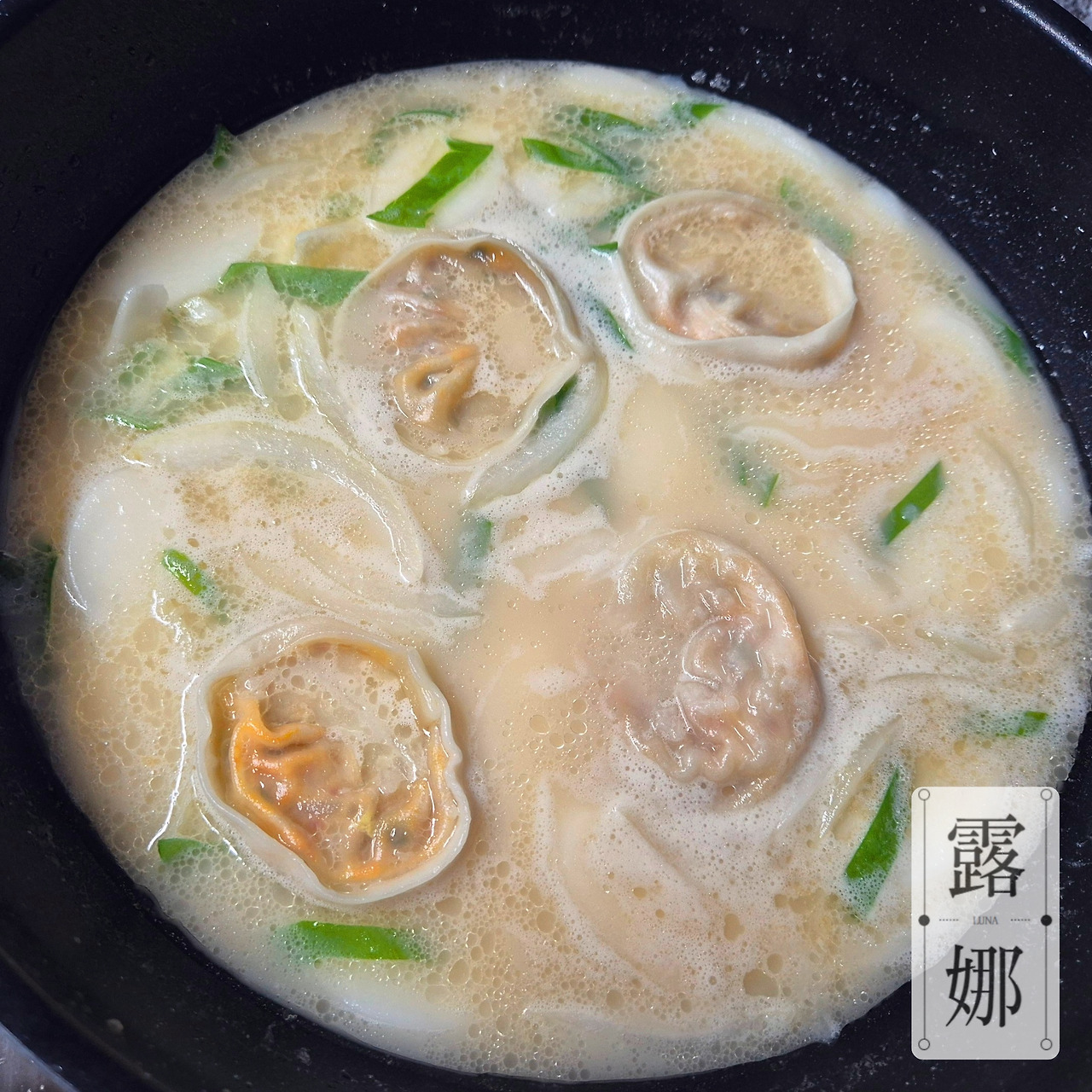 지단을 식히는 동안엔 곰탕을 불 위에 올렸다. 맛을 보니 간이 전혀 되어 있지 않아 풍부한 맛을 내어주기 위해 다진 마늘과 간장, 그리고 참기름을 넣었다. 중간중간 국을 저어주며 간을 봤는데, 여전히 부족한 거 같아 간장을 조금 더 추가했다. 나는 간장으로만 기본 간을 했으나 기호에 맞게 소금이나 간장을 추가하면 될 듯하다.