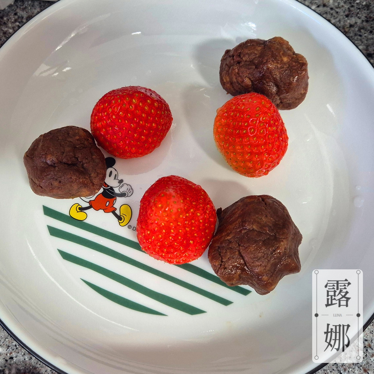 위생 장갑을 낀 후 반죽을 조물조물하니 윤기와 함께 초코색이 더 나타났다. 딸기는 사실 많이 필요하지 않다. 맛있지만 요즘 너무 비싼 딸기, 기회다 싶어 한 팩을 구매했다:) 그중 솔방울 모양을 내기 좋을 것 같은 아이들로 골라 꼭지를 정리해 주었다. 반죽을 펼쳐서 딸기를 감싸는 것이 너무너무너무 어려웠다. 반죽이 너무 되서 그런지 계속 끊어졌는데, 아마 날씨가 춥다보니 금방 차가워져서 굳었던 것이 아닐까 싶다. 분명 영상이나 다른 글들은 그렇지 않던데, 내 반죽은 너무 푸석해 보였다.