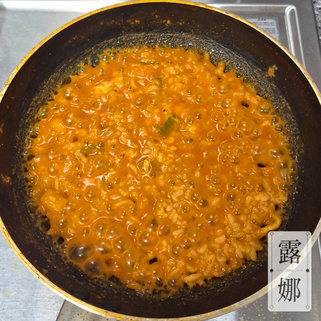 이렇게 모두 넣고 끓이다 보니, 팬이 생각보다 작아 넘칠 것 같았다. 더 큰 팬으로 바꾸자니 설거지가 늘어나기도 하고 혼자 먹겠다고 큰소리쳤는데 양이 많은 것 같아 라면 1개를 다 넣지 않고 3/4 정도만 넣었다. 라면에 들어있는 플레이크를 선호하지는 않아 살짝만 넣은 뒤 치즈를 골고루 흩뿌려 준다. 나는 모짜렐라를 좋아하는데, 남편은 체더치즈를 좋아한다. 엿장수 마음대로 본인이 좋아하는 치즈를 골라 넣어주면 될 것 같다:)