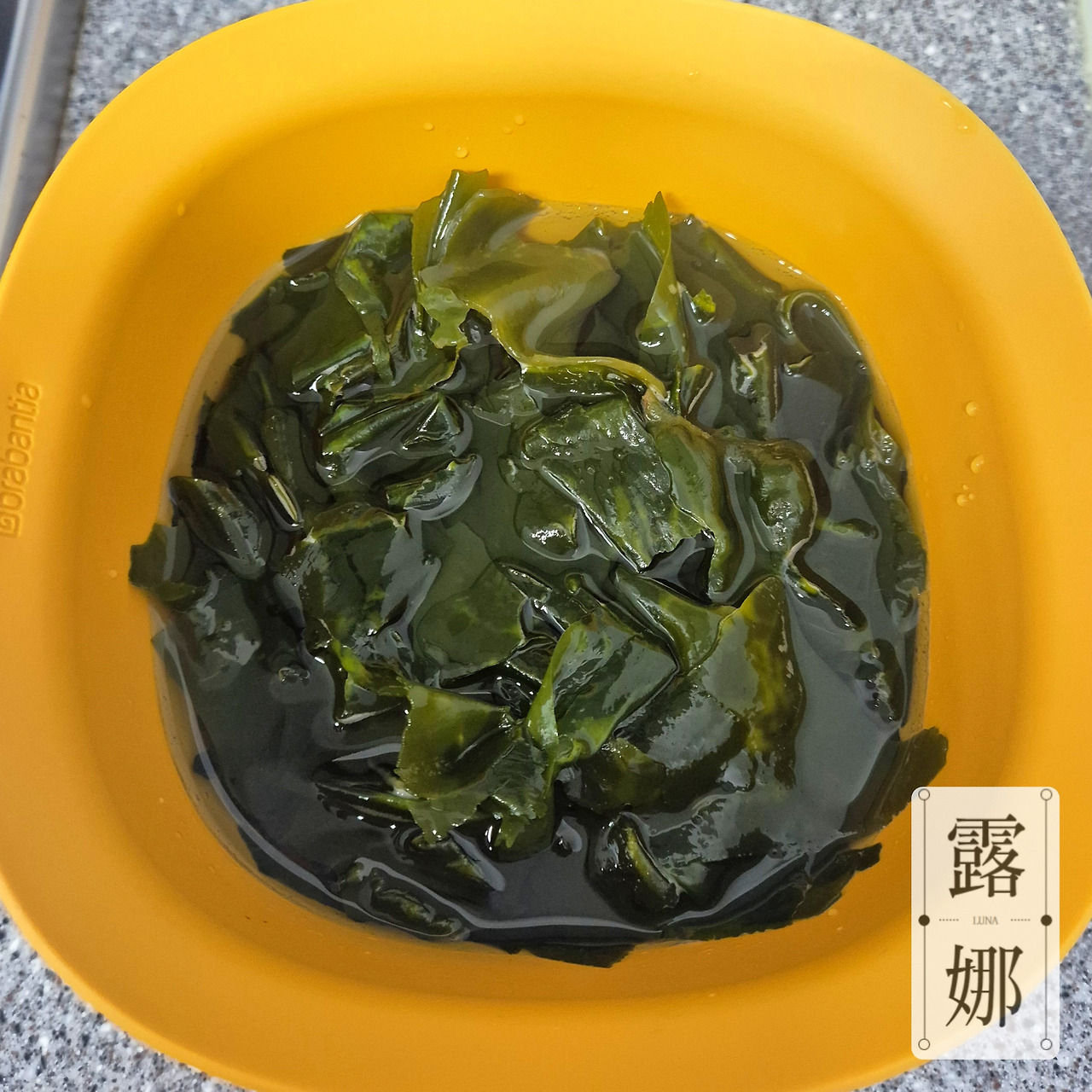 미역국은 사전 작업이 필요하다. 미역을 불려야 한다. 대략 두 주먹 반 정도로 집어 물에 30분 이상 담가 불려놓았다. 미역이 불으면 양이 엄청나게 많아지기 때문에 주의할 것! 그리고 불린 미역은 조물조물 세척해 주었다.