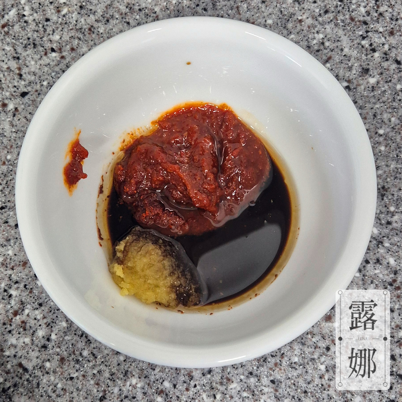 그리고 양념장을 준비! 양념장에는 고추장과 간장, 올리고당, 다진 마늘, 참기름을 넣어주고 약간의 고춧가루를 추가한 후 잘 저어준다.