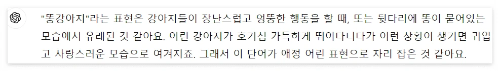 엉뚱할 수도 있으나 다시 한번 ChatGPT에게 '똥강아지'라는 표현에 대하여 물어보았다.