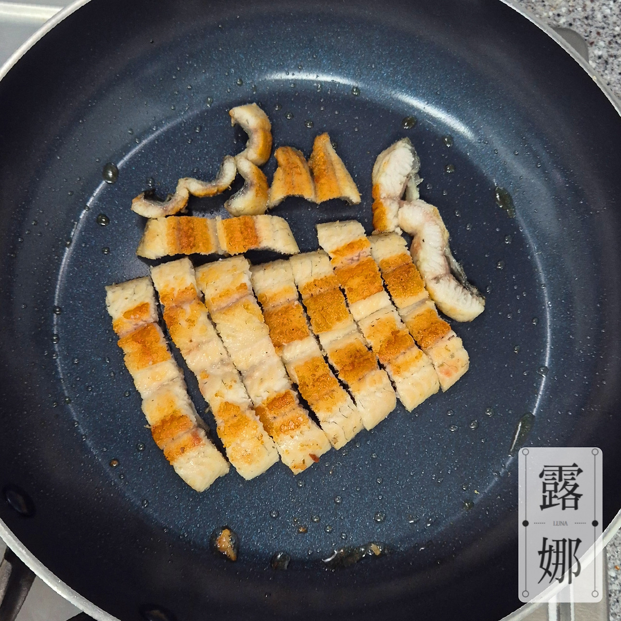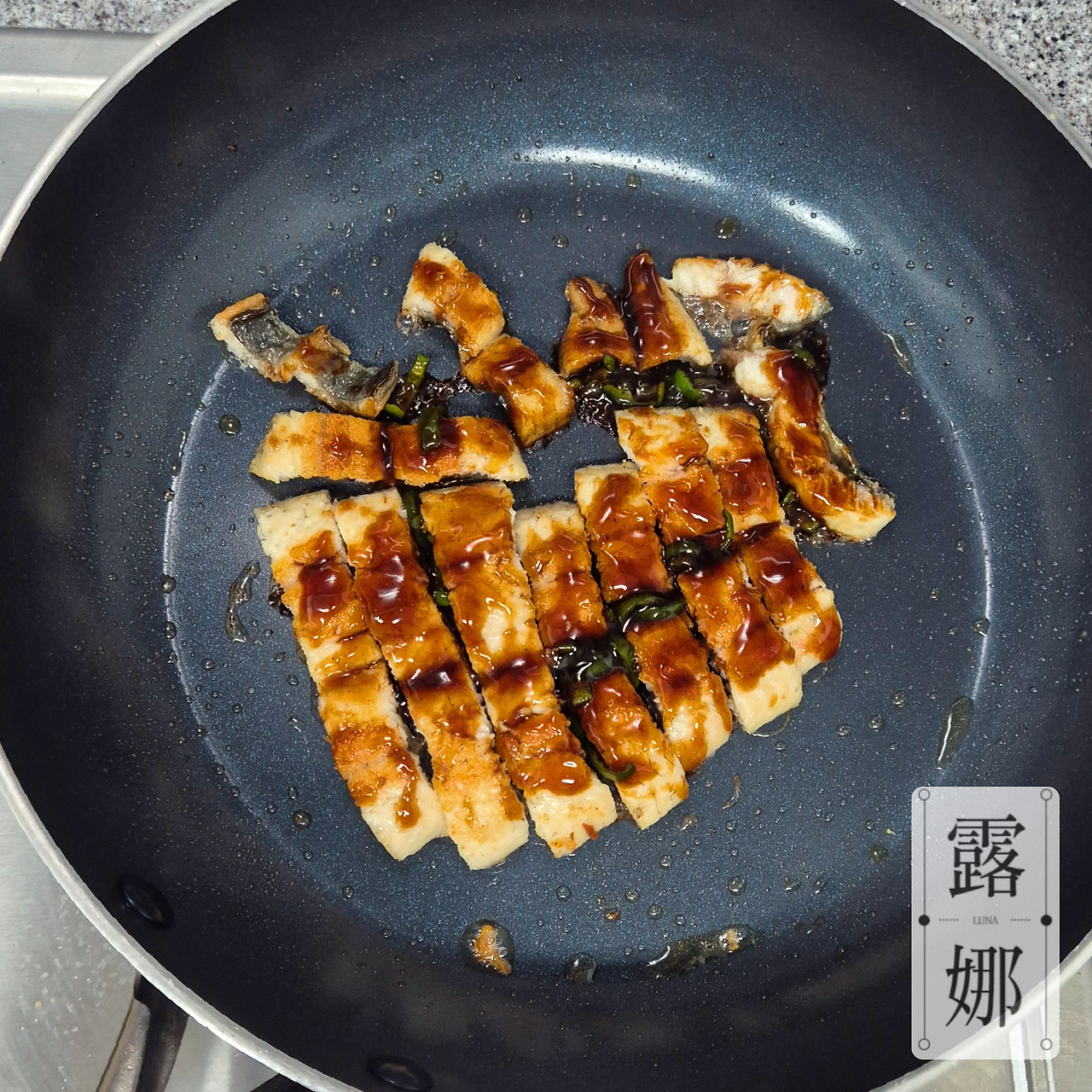 이미 장어를 포장할 때 초벌구이를 해 왔고, 소스와 생강이 포함되어 있어 간편하게 만들 수 있었다.