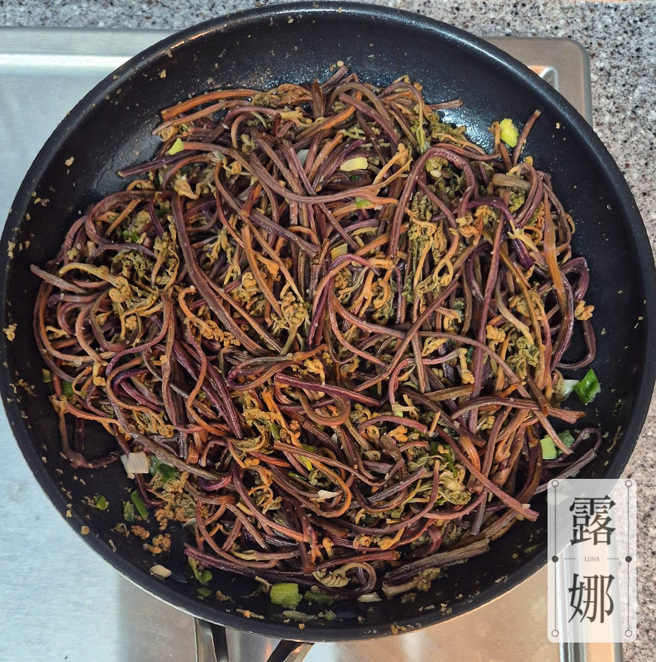 고사리에 양념을 넣고 조물조물 무쳐준 후 간이 배도록 재워준다. (나의 경우 1시간 정도 넉넉히 기다렸다.) 팬에 식용유를 두르고 양념한 고사리를 볶아준다. (중간에 간을 보고 혹 싱거우면 간장을 추가하기.)