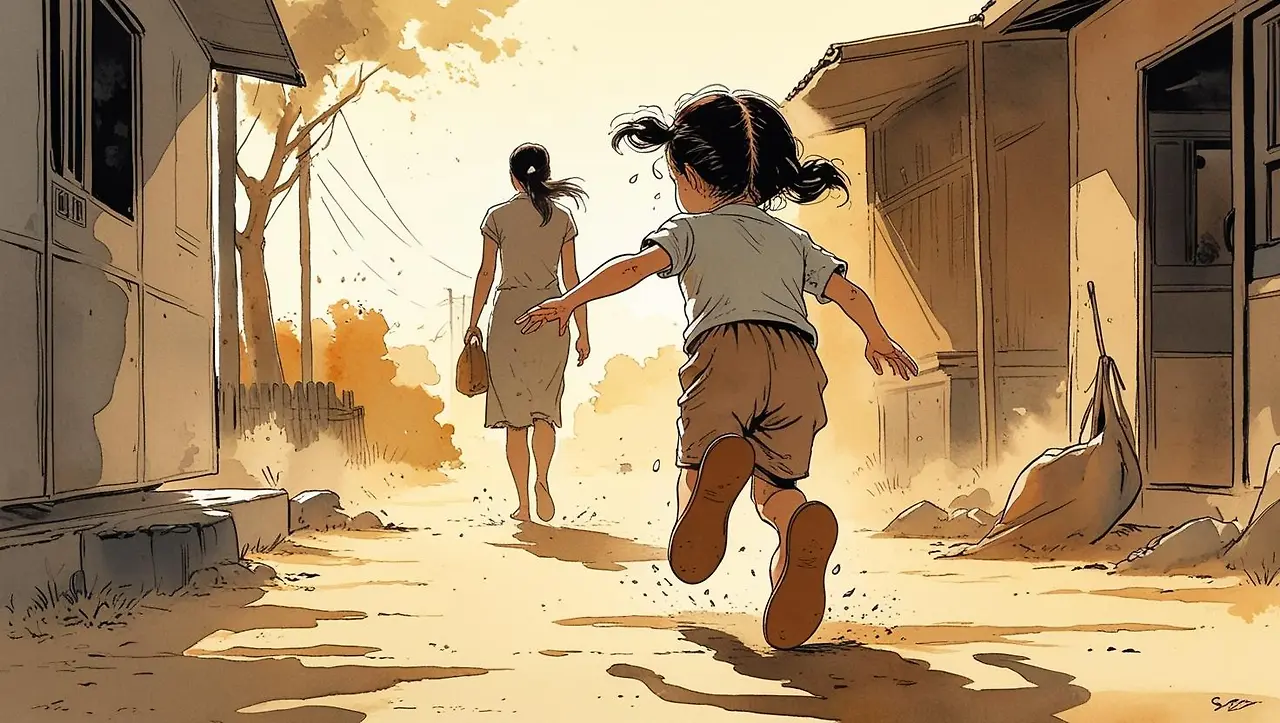 “엄마! 엄마!” 하고 울먹이며 따라 나섰다.