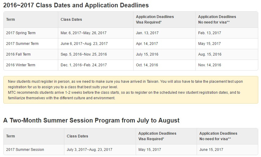 수업 형태는 밀집반(최대 8명)과 보통반(최대 10명) 중 선택할 수 있다. 밀집반은 매일 3시간씩 주 15시간, 보통반은 매일 2시간씩 주 10시간 수업을 듣게 된다. 밀집반은 수업 시수가 많은 만큼 진도도 빠르고 거의 매일 받아쓰기(聽寫) 퀴즈며 숙제가 있지만 학생비자의 경우 추가 수업을 들을 필요가 없다는 장점이 있다. 학생비자는 주 15시간을 충족해야 비자 연장이 되기 때문에 보통반의 경우에는 대형 수업(大班課)을 듣거나 도서관에서 자습을 해서 시간을 채워야 하는 번거로움이 있다. 당대중문 기준으로 밀집반은 한 학기에 책 한 권이 딱 끝나고 보통반은 약간 남는 정도라 학기말 시험(大考試)도 따로 본다.