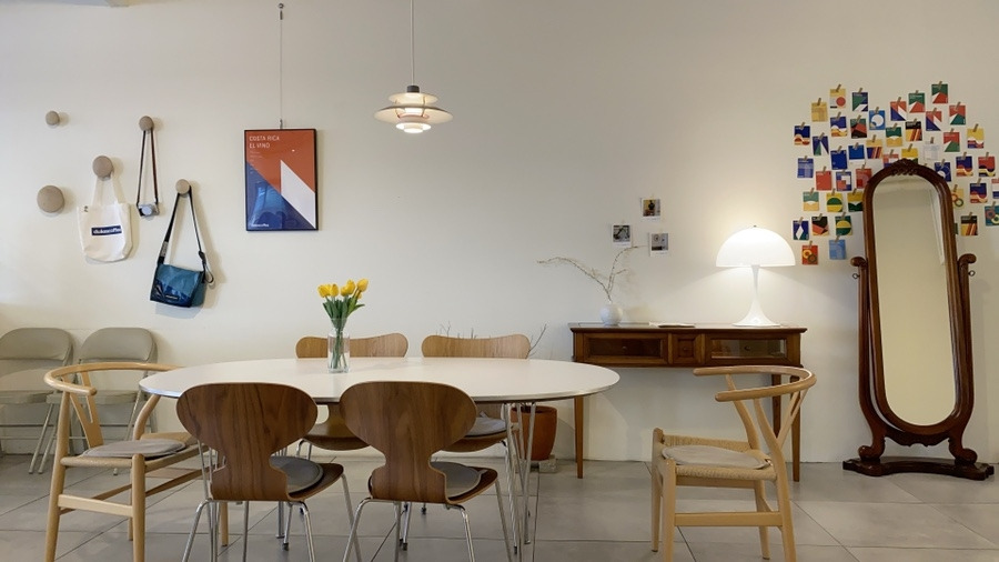 자리 배치 또한 매장이 비교적 넓어서 그런지, 좌석 자체를 사장님이 많이 안 만들어서 그런지 적당히 잘 떨어져 있다. 인테리어 또한 밝은 분위기로 잘 되어있다. 특히 사진으로 찍은 저 무지개 모빌은 아기자기한 것이 조카들이 놀러 왔을 때 참 좋아했다. 이런 자리 사이의 거리감과 공간이 주는 느낌이 사람을 심리적으로 안정적이게 만든다. 가끔 스타벅스나 동네에 소문이 잘 난 카페에 앉았는데 여기가 시장통인지 모를 정도로 북적북적하고 혼란스러울 때가 있다. 그런 일은 적어도 이 집에서는 보기 힘든 광경이다. 북적북적한 오후 시간에도 '와 아무리 그래도 이건 아니지...' 싶은 정도로 사람에 치인 적이 없다. 처음에는 오는 사람이 적어서 그런가 싶었지만, 하루는 객관적으로 진짜 할 일이 없어 주말 피크 시간에 들어오는 사람들을 세어봤는데, 다른 카페보다 자리가 여유로웠던 거가 맞았다. 절대 오는 사람 수가 적지 않다.
