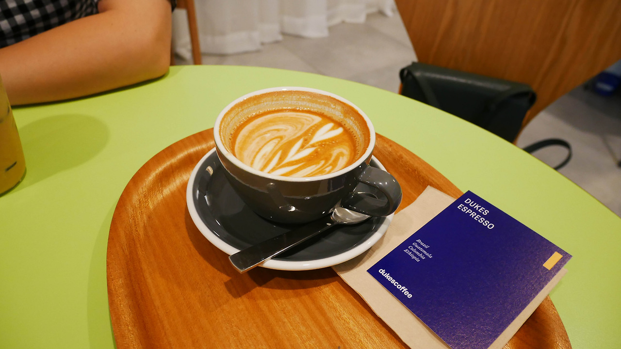 커피 맛도 조금 다르다. 커피 맛을 잘 모르기는 하지만 위에 나온 사진처럼 Dukes라는 로스팅 회사에서 나오는 원두를 사용한다. 진열도 해 놓는 것으로 보아 원두도 파시는 거 같다. 옆에 비슷한 디자인에 에티오피아 뮬리시(Ethiopia Mulish)라고 되어있는 것도 같이 진열되어 있는 걸로 보아 주력으로 쓰는 원두가 저거겠지 않나 싶다. 체인점 커피들의 평균적인 맛보다 좀 더 무게감 있고 진하다. 실제로 동기들하고 갔을 때 반응이 제일 재미있게 갈렸던 곳이다. '완전 좋아'와 '이거 좀 센 거 같다'. 나 같은 경우 전자였다.