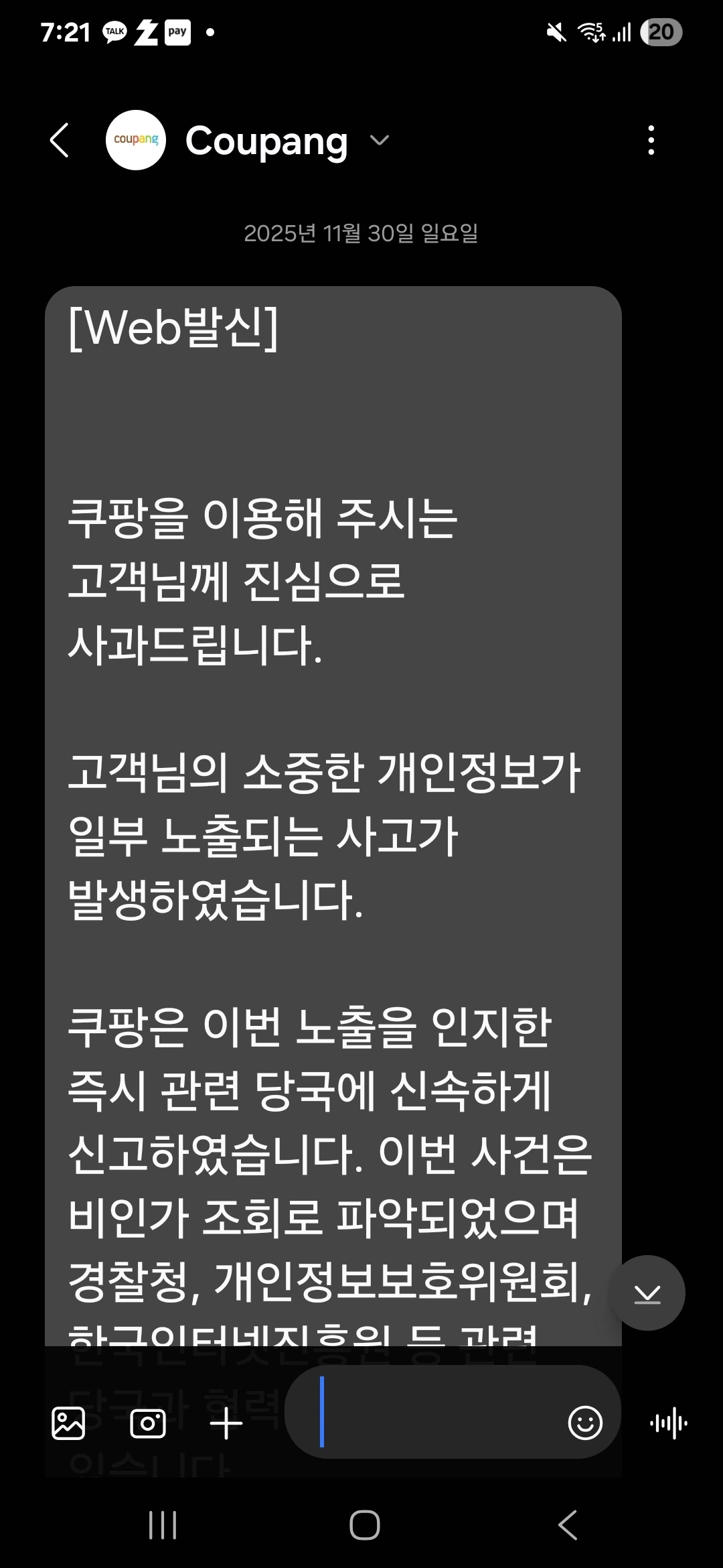 2025년 11월 30일 내 핸드폰에는 이런 문자가 왔다,