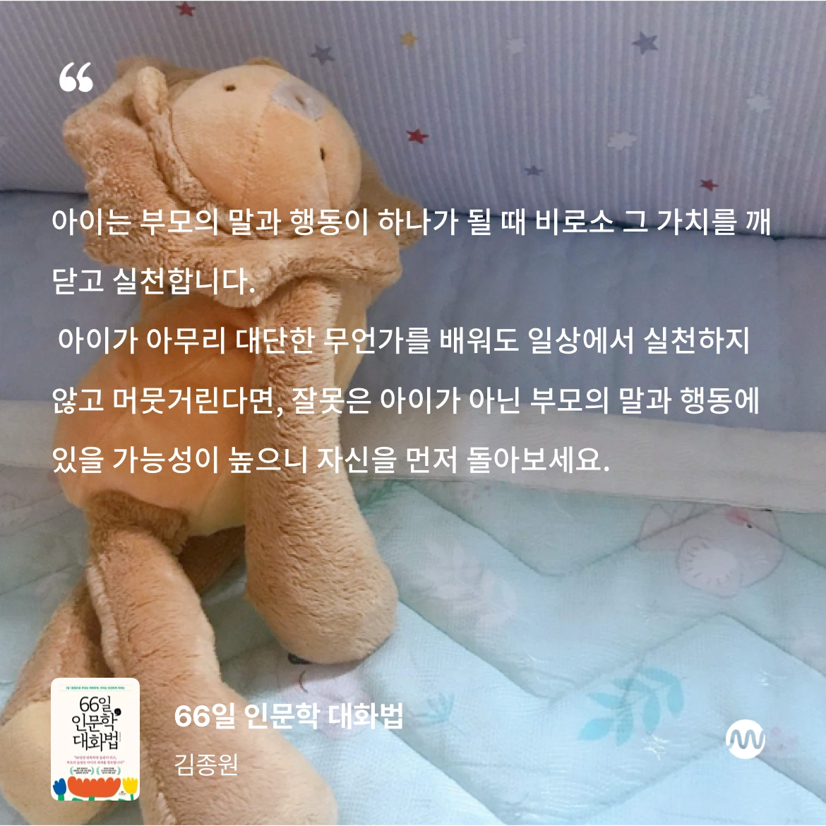 <66일의 인문학>에서 만난 이 문장을 주문처럼 떠올린다. 이 책에서는 부모의 언어가 아이가 살아갈 세상이라고 말한다.