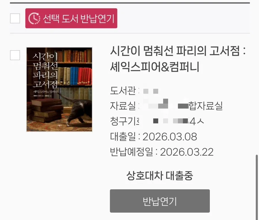 이 문장을 읽다가 도서관 앱을 열어 제레미 머서의 <시간이 멈춰 선 파리의 고서점>을 검색한 뒤 상호대차 신청을 했다. 무슨 내용인지도 모르면서 파리의 고서점에 빠져버릴 것 같은 몽글몽글한 기대감에 설레었다.