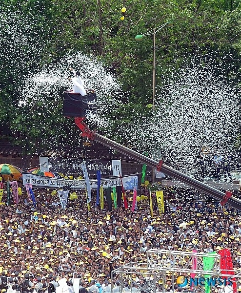 내 손으로 직접 뽑았던 첫 대통령, 너무도 허망하게 떠난 그분의 노제에 참석했을 때, 흰 소복을 입은 사람이 크레인을 타고 하늘 높이 올라 외쳤었다. 그의 이름을. 그리고 복. 복. 복. 떠나보내면서도 돌아와 달라 외치는 간절한 마음을. 허공을 가르는 떨리는 목소리에, 나는 조금 울었던 것 같다.