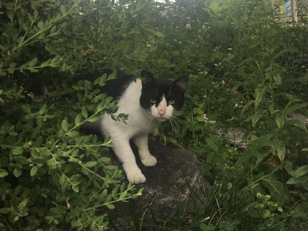 길고양이 젖소를 처음 봤을 때 수풀 속에 숨어 경계하는 모습이 조심스러웠지만 예뻐서 눈이 갔다.