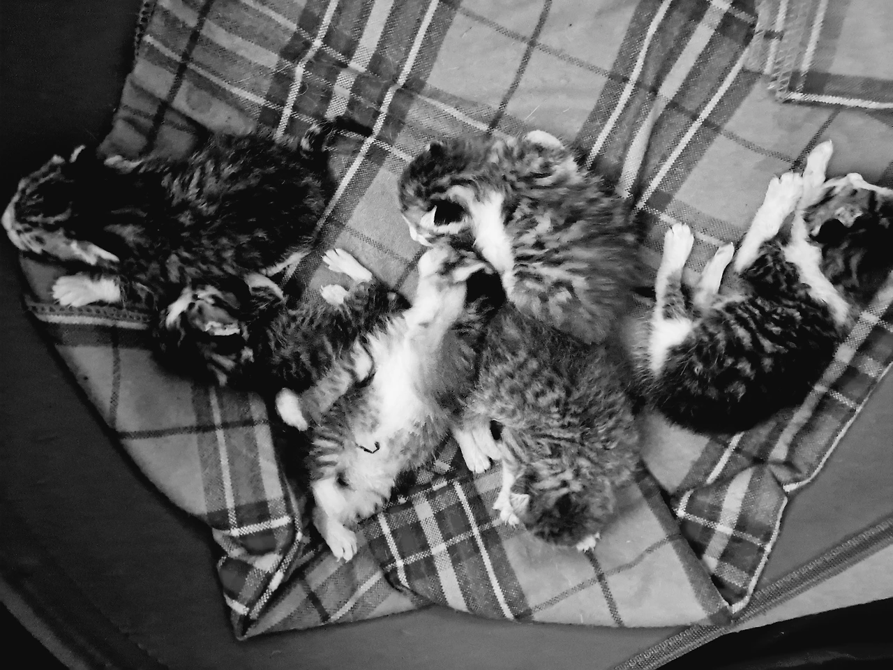 다음 날 가서 보니 4마리가 아니라 6마리다. 아직 눈도 못 뜨고 몇 마리는 하악 거리며 숨을 쉰다.