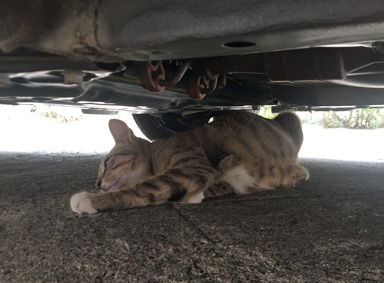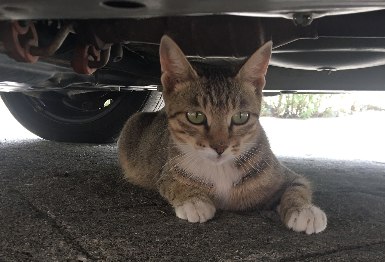삐진 건지 애정 하는 장소인 차 밑에 숨어서 안 나온다.