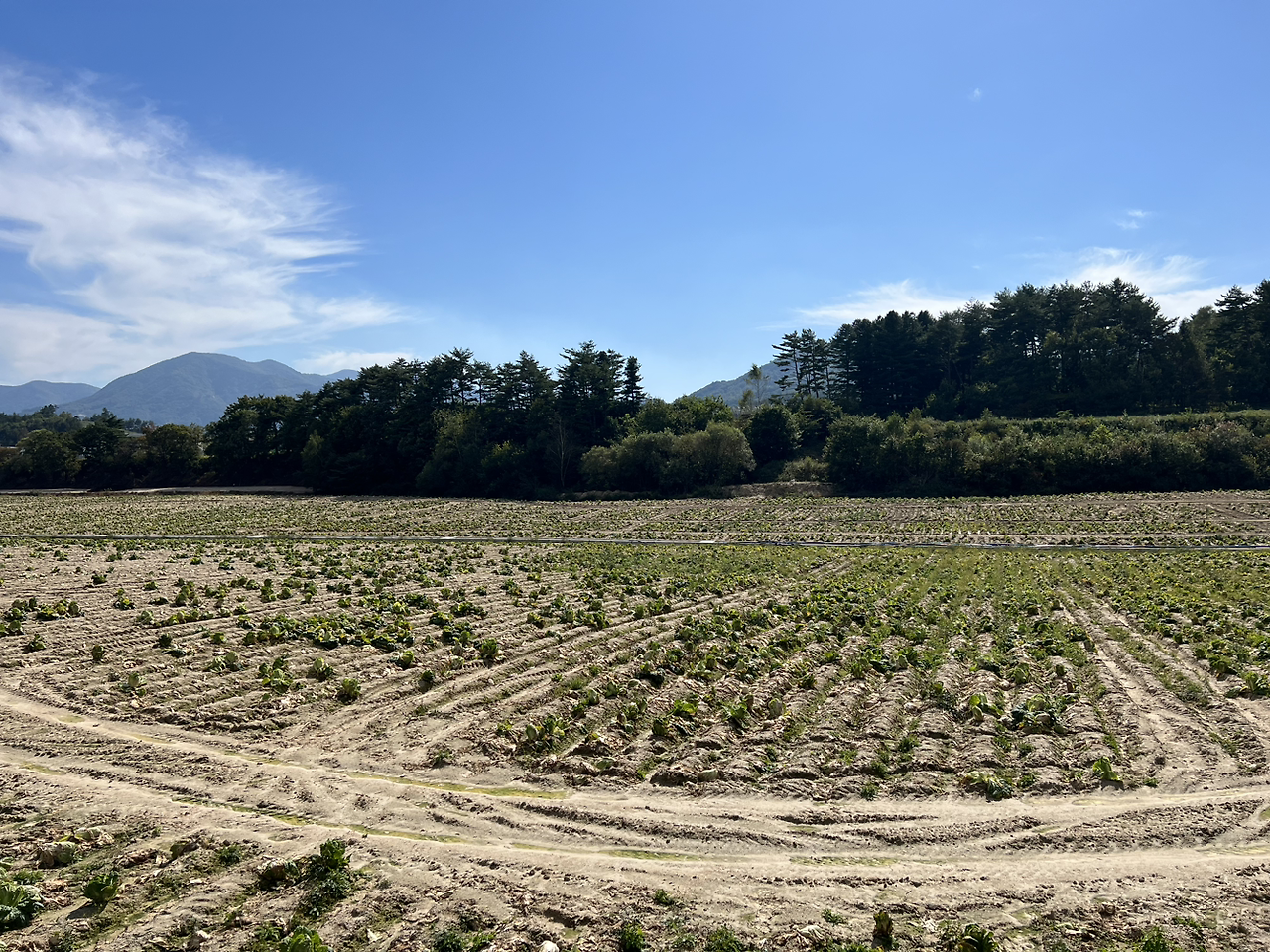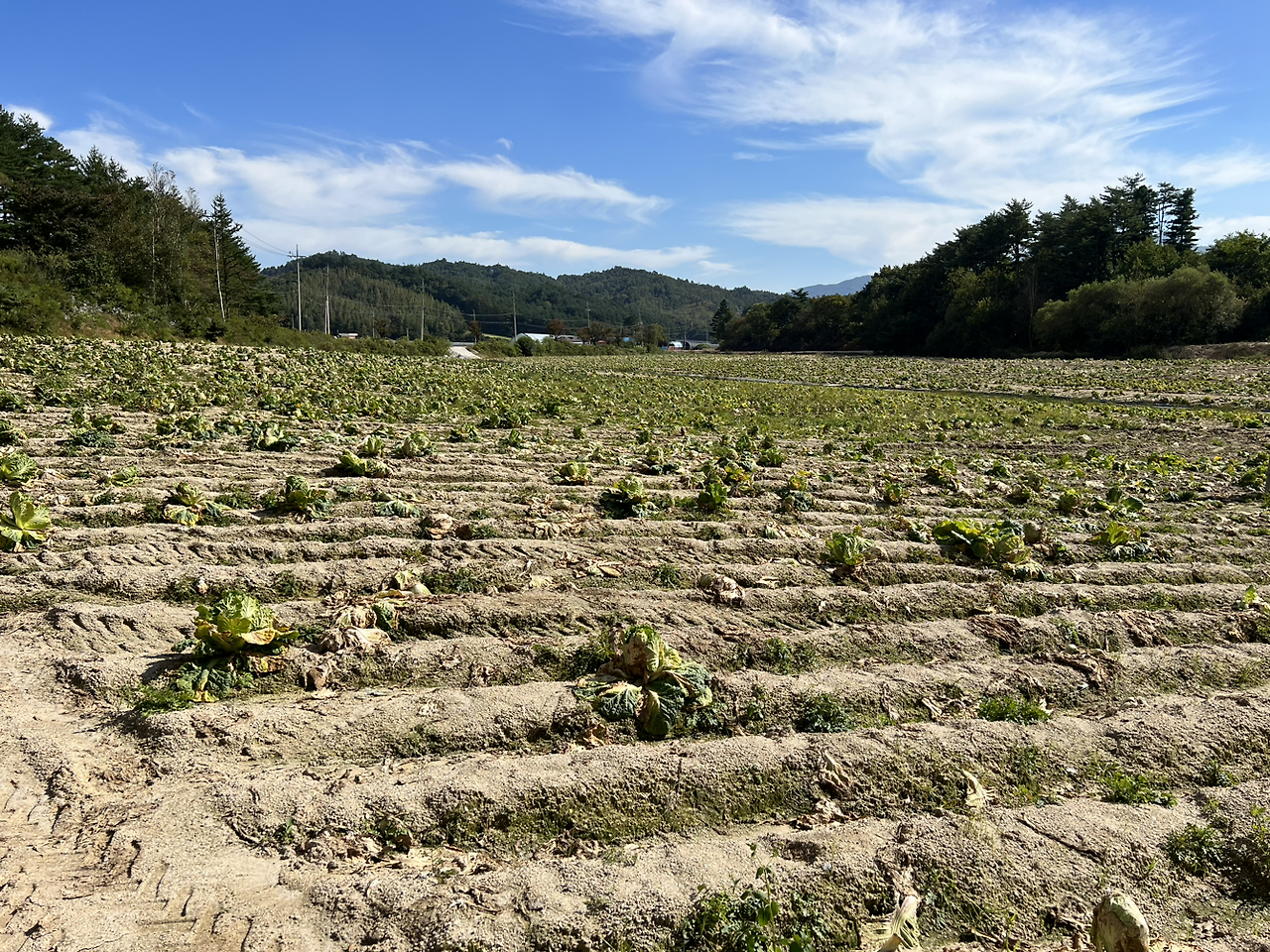 이번에도 내려서 무작정 걸었다. 송정동과 반대의 양상. 겉대가 시들어 수확하지 않은 배추들도 곳곳에 보였지만 다시 수확의 기회를 볼 수 없음이 확실하듯 흙먼지를 가득 머금고 있었다. 무는 아예 보이지조차 않았다. 하지만 그 속에는 꽉 찬 알배추가 보였다. 여기 있는 배추들만으로도 우리 가족 10년을 먹을 김장을 담글 수 있겠군.