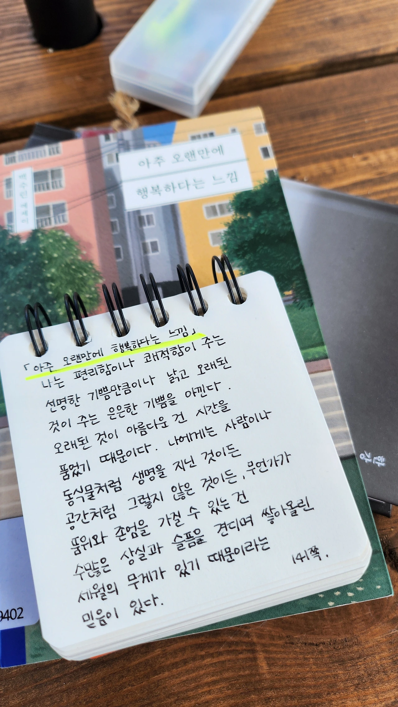 최근엔 에세이를 찾아 읽기 시작했다. 원래 에세이는 관심 밖의 장르였는데-지금 생각해 보니 이것도 질투의 다른 모습이다-이제는 꽤 즐겁게 읽는다. 내가 읽고 싶은 글이 곧, 내가 쓰고 싶은 글일 테니까. 최근 백수린의 <아주 오랜만에 행복하다는 느낌>을 읽고 딱 느낌이 왔다. 이런 글을 나도 쓸 수 있을까. 누가 봐도 쉽게 읽히는데 결코 가볍지가 않은 글.