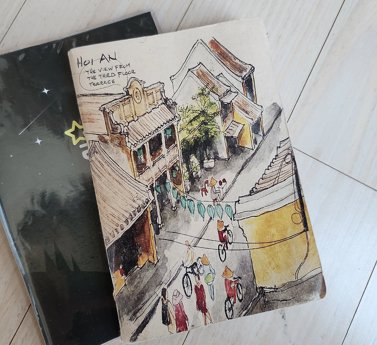 숫자에 약하다보니 날짜와 시간 감각도 부족한 건 당연한 이치. 이번엔 특별히 평소 여행보다 얇으면서도 많이 쓸 수 있는 A5 공책 한 권을 준비했다. (평소엔 손바닥 만한 수첩을 하나 챙겨서 일정이나 감상을 조금씩 남긴다.결국 마지막엔 흐지부지 되는게 내 스타일이긴하다. )