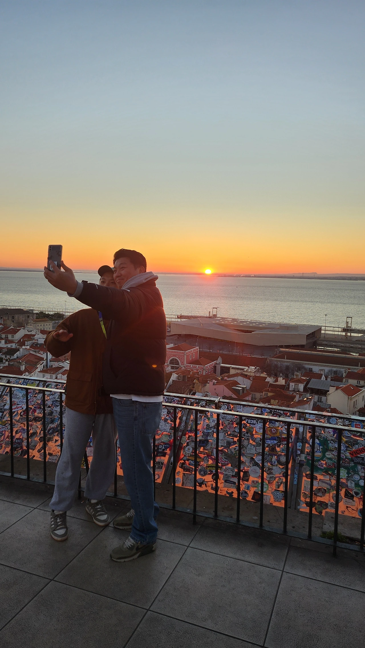 이곳은 포르타스 두 솔 전망대가 아닐지도 모른다는 의심이 점점 커지고 있을 때, 신랑은 벌써 아들을 데리고 사람들이 모여있는 곳으로 가버렸다. 황급히 따라간 그곳엔 배우처럼 보이는 멋진 여자가 테주강을 배경으로 카메라 앞에서 포즈를 취하고 있었다. 여기였어! 이게 뭔 상황인지. 얼마나 멋진 일출이 나오길래 촬영까지 왔을까 싶으면서도, 모두에게 허락된 뷰포인트를 앞에 두고도 제대로 보지 못한다는 사실에 괜히 억울한 마음이 들었다.