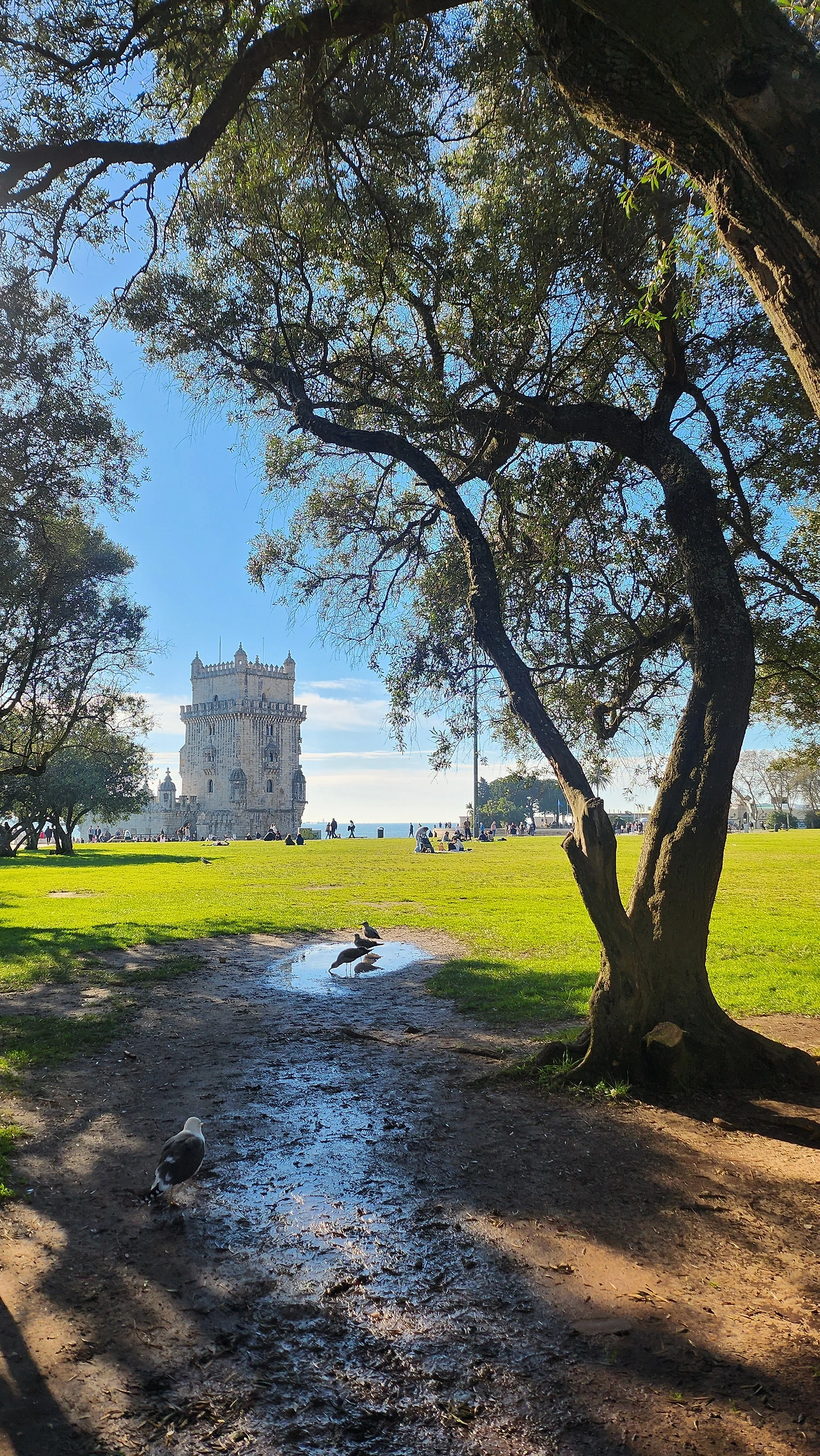벨렝탑도 리스보아카드로 무료입장이 가능하지만 시간대별로 예약을 받아서 QR코드 표를 발급받아야 입장이 가능하다. 흐음- 아무리 비수기라지만 인원 제한이 걸려서 표를 받고도 벨렝탑 앞엔 긴 줄이 있었고 우린 과감하게 전망대에 오르는 것을 포기했다. 오히려 들어가는 길에서 만난 작은 공원에서 보는 벨렝탑과 타구스강의 풍경이 멋져서 여기서 쉬어가는 것도 괜찮은 방법이라 생각했다. 실제로 이곳 사람들은 곳곳에 자리를 잡고 피크닉을 즐기고 있었다. 만약 다시 온다면 작은 돗자리와 간단한 간식을 사서 오리라. 그만큼 초록의 공원과 벨렝탑의 조화가 참 멋있는 공간이었다.
