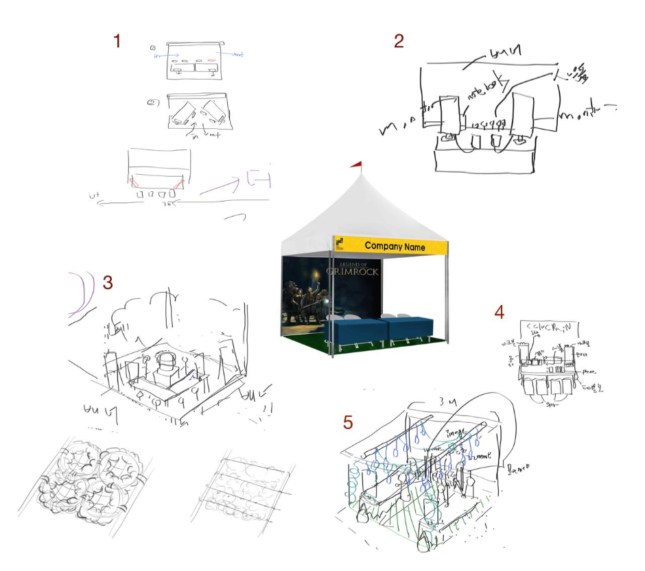 물론 방문하는 관람객이 게임에 집중할 수 있게끔 하는 것이 가장 기본으로 갖춰야 할 요건이었고, 외부에 지나다니는 사람들의 시선을 자연스럽게 붙잡아서 게임을 어필할 수 있는 동선 배치를 해야 하는 것 또한 중요했다. 그리고 가능하다면 부스에 방문한 경험 자체로 게임 세계에 한발 들어와 있는 느낌을 받을 수 있도록 할 수 있으면 더욱 좋다고 생각했다.