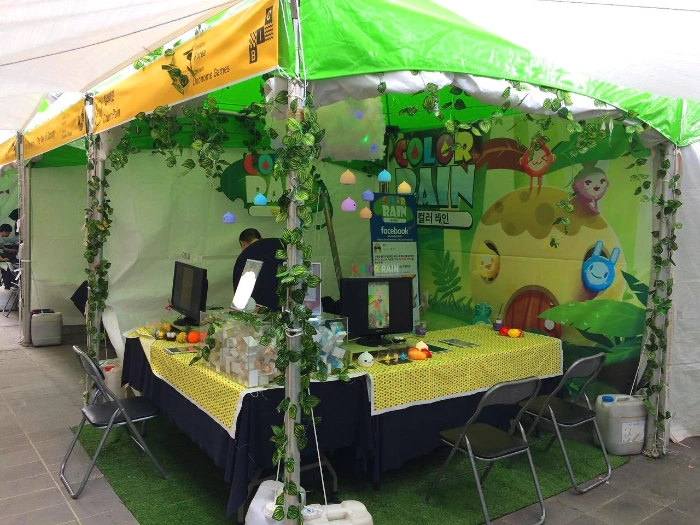 기념품을 제작하는 작업과 함께 행사를 위해 가장 신경 썼던 부분이 바로 실제 관람객을 맞이할 전시 부스를 꾸미는 일이었다. 행사의 취지가 인디 게임을 위한 축제의 장이므로 축제의 분위기를 끌어올리는데 전시자로서 일조하고 싶었다.