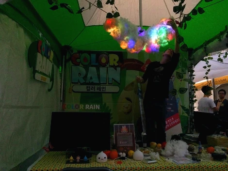 부스 꾸미는 것을 계획하던 시점에 가장 걱정했던 점은 준비했던 여러 가지 요소들이 한데 어우러져서 하나의 컨셉으로 완성될 것인지, 아니면 각자가 따로 놀아서 지저분해지기만 할 것인가 하는 부분이었다. 행사에 참가한 다른 팀들이 세팅을 끝내고 돌아가는 와중에 우리는 날이 어두워지고 전등이 없어 깜깜 해질 때까지 부스를 꾸몄고, 힘들게 작업을 해놓고 보니 전체적으로 잘 어우러져서 다행이라는 생각이 들었다.