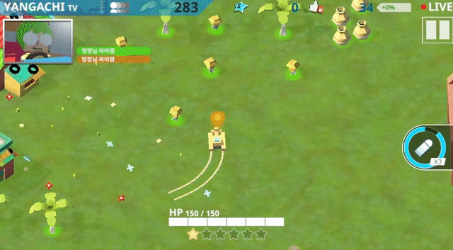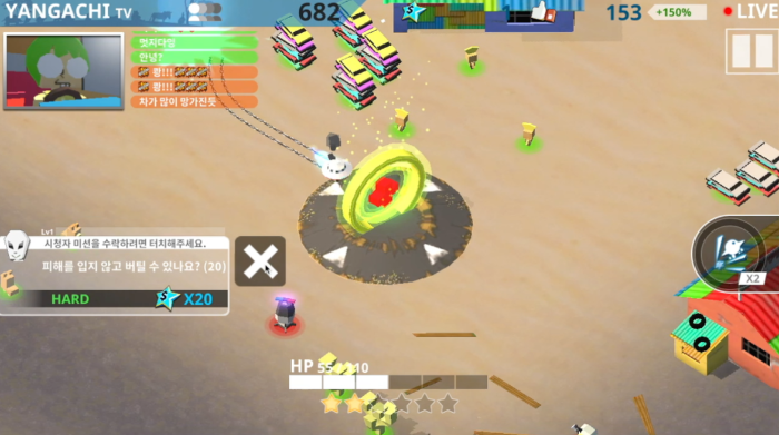인터넷 스트리밍 플레이어 화면을 전체 컨셉으로 정했고, 게임 중 시청자가 미션을 요구한다는 것을 최초 목표로 잡았다. 그렇게 만들어진 버전에서 우리가 느꼈던 문제는 시청자들이 정말로 내 방송을 보고 있는지에 대해 느끼기 힘들었다는 점이었다. 그래서 시청자를 게임 화면에 넣어보겠다는 시도를 시작했다. (하지 말았어야 했다.)