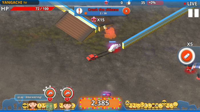 지금부터 UI/UX에 취약점을 가진 우리가 인터넷 방송 컨셉에 대한 정서를 만들어내기 위해 했던 푸닥거리(?)들을 나열해보겠다. 다시 한번 강조하자면 ‘플레이어의 인터넷 방송을 시청자가 보고 있다는 느낌, 그리고 정신 나간 운전을 통해 시청자에게 보상을 받는다는 느낌'을 넣어주면 되는 것이었다. 참 쉽죠?
