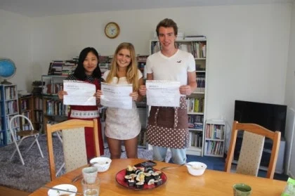 이 어학원에는 드미 오페어( 프랑스어로 드미는 반 half, 오페어는 유모 란 뜻으로, 뉴질랜드 현지인 집에서 무료 숙식을 제공받으며, 오전에는 어학원에서 공부하고 오후에 아이 돌보며 주급을 받고, 주인과의 계약에 따라 일하는 시간을 조정하며 주말에는 다른 알바도 할 수 있는 프로그램이다) 들이 상급반에 주로 있어서 이렇게 아이들을 여자 집에 데리고 와서 김밥을 말기도 했었다.