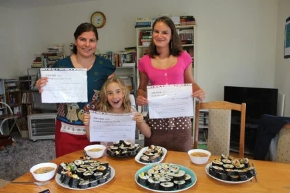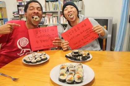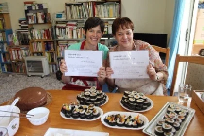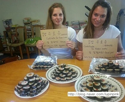 어학원 인턴으로서 여자는 주말 액티비티로 당일, 일박, 혹은 이박 여행을 기획하고 진행을 하기도 했지만 이렇게 여자의 집에서 김밥 수료증을 액티비티로 진행하기도 했었다. 여자는 이 년여 동안 육십여 명에게 김밥 수료증을 주었다.