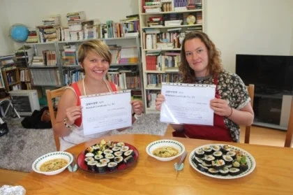 그 첫 단추는 당시 인턴이었던 독일 여인 크리스티나가 끼웠는데, 여자가 어학원에 자주 싸가서 나눠 먹었던 김밥을 보고 자기도 가르쳐 주면 안 되냐고 물었었다. 왜 안 되겠냐고 여자는 반색을 했고, 주말에 같이 오고 싶다던 프랑스 여학생 티바이티도 같이 여자의 그 피네로 플레이스 집에 와서 재료를 같이 준비하고 신명 나게 김밥을 말아서 썰어 먹었다. 레시피를 메모해 가며 학구적으로 배웠던 크리스티나가 여자에게 써티피킷을 해달라고 했다. 그게 시작이었다.