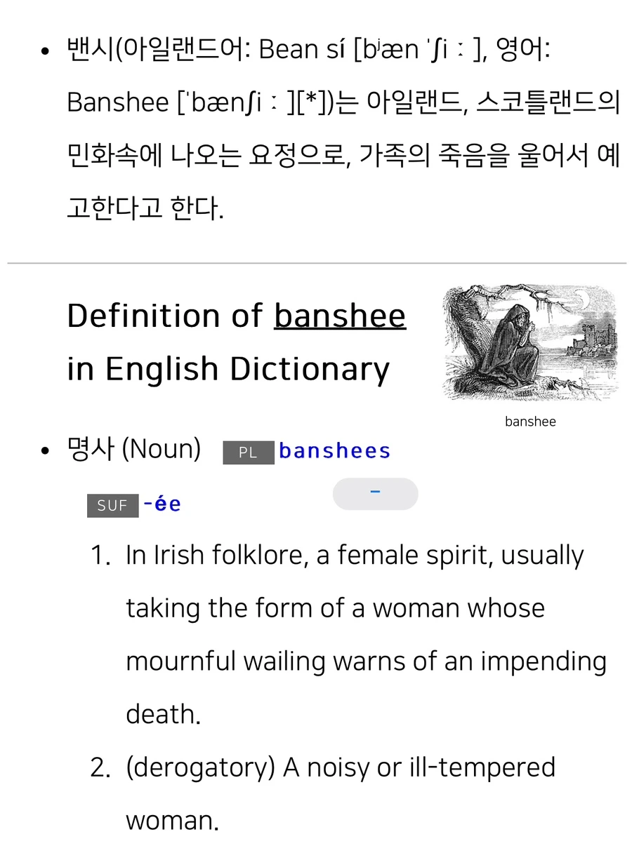 마틴 맥도나 감독의 2023년 작, The Banshees of Inisherin 을 제목으로만 봤을 때 이걸 뭐라 읽어야 하지 했다. 이니셰린은 지명이겠고 밴시스는 사람 이름인가 했더니 가족의 죽음을 알리면서 우는 아일랜드 신이라고.